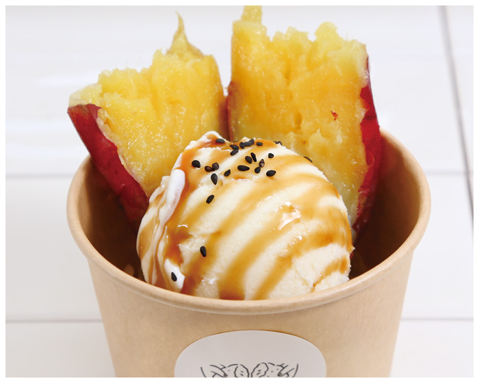 焼き芋ジェラートの上にたっぷりの焼き芋ペーストをのせた逸品